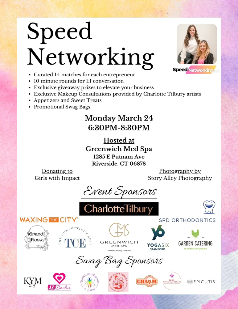 Join Speed Networking LLC at their next event on Monday, March 24 6:30PM-8:30PMsay Greenwich Med Spa.Ā